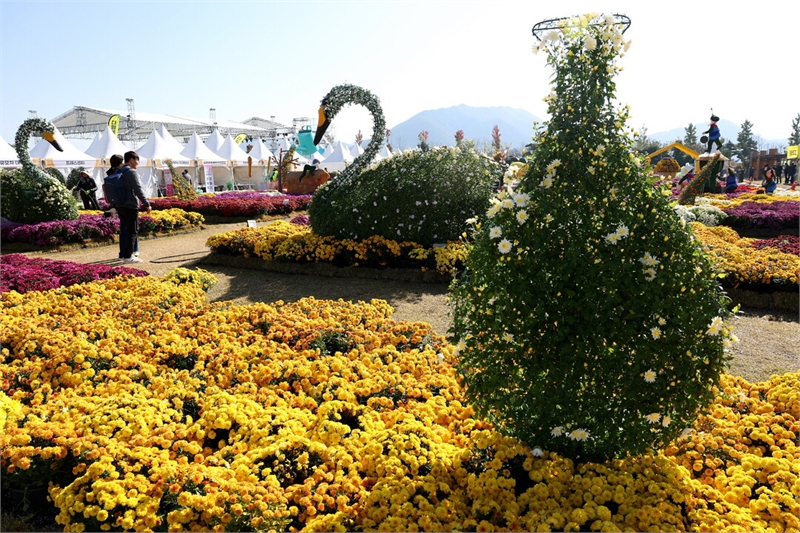 강진만 춤추는 갈대축제 현장이 알록달록 국화로 물들었다. [강진군 제공]