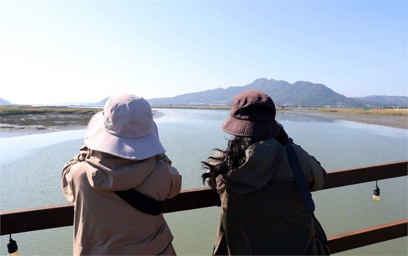 ▲ 관광객들이 가을 정취를 즐기며 강진만을 바라보고 있다. [강진군 제공]
